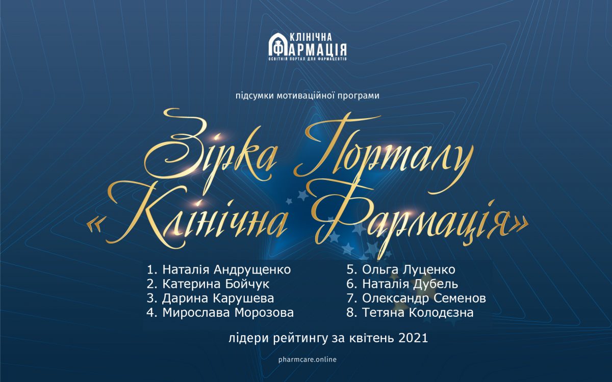Вітаємо переможців та нагадуємо, що проміжні результати мотиваційної програми «Зірка Порталу «Клінічна Фармація» підводяться кожного місяця. Тож кожен активний учасник порталу може стати нашим новим лідером та отримати цінні знання, подарунки та призи.
