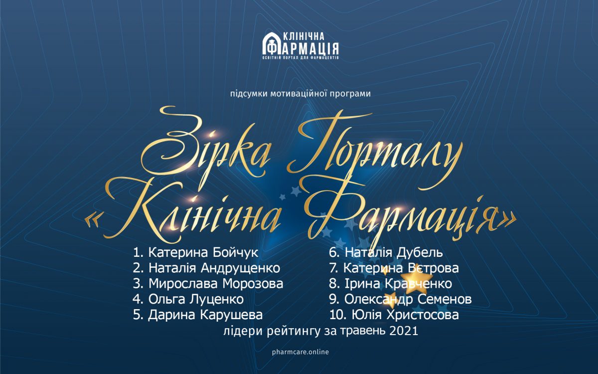 Щомісяця ми підбиваємо підсумки мотиваційної програми «Зірка Порталу», запровадженої на порталі для проактивних провізорів та фармацевтів «Клінічна Фармація».