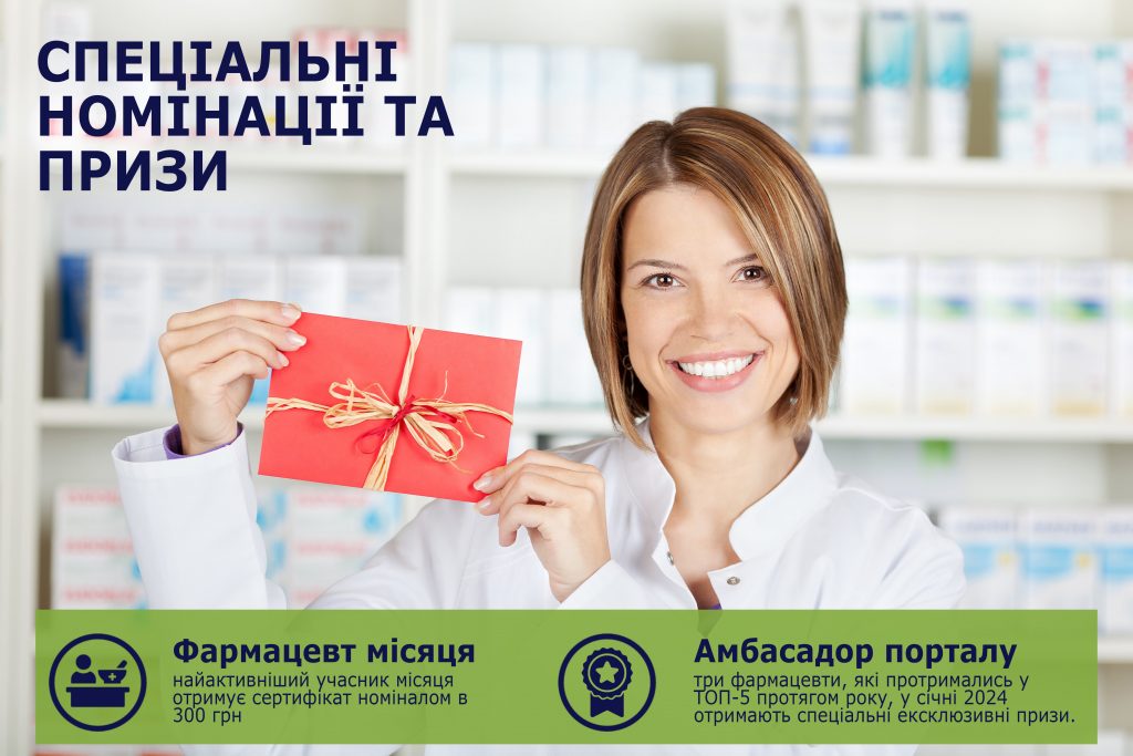 Ми також продовжуємо нашу номінацію «Амбасадор порталу» для 3-х фармацевтів, які найдовше займають лідерські позиції в топ-5 мотиваційної програми. Дана нагорода буде реалізована лише 1 раз на рік, під час підведення підсумків програми за рік. Проте вона надає право на ексклюзивний подарунок на вибір.