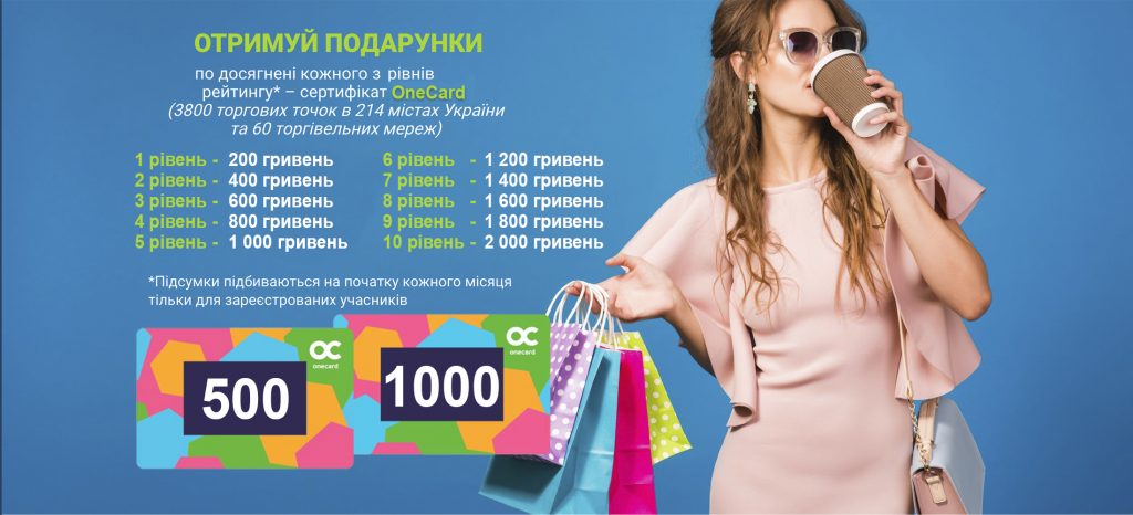 Кожного разу, коли учасник буде досягати нової ланки нашої програми, він буде отримувати на пошту спеціальний диплом та подарункову карту відповідного номіналу.