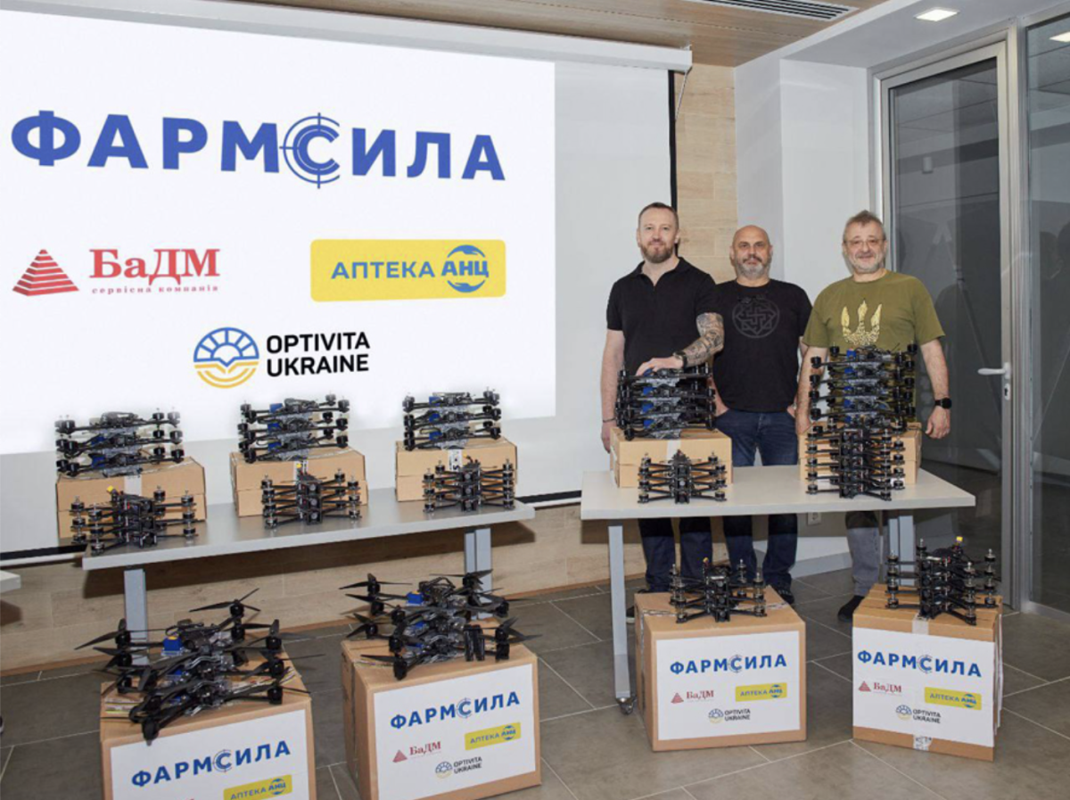 Мережа аптек «АНЦ» спільно з компанією «БаДМ» і благодійною організацією Optivita Ukraine передали на фронт майже 100 дронів для бійців Збройних Сил України у рамках ініціативи ФАРМСИЛА.