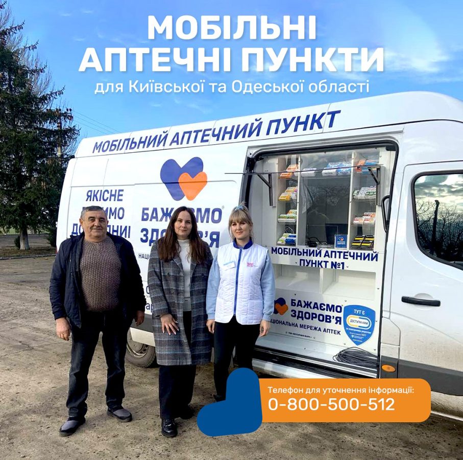 З початку січня 2025 року аптеки «Бажаємо здоров’я» запустили мобільні аптечні пункти (МАП), які працюватимуть у Київській та Одеській областях. Це інноваційне рішення спрямоване на поліпшення доступу до лікарських засобів для мешканців найвіддаленіших населених пунктів.