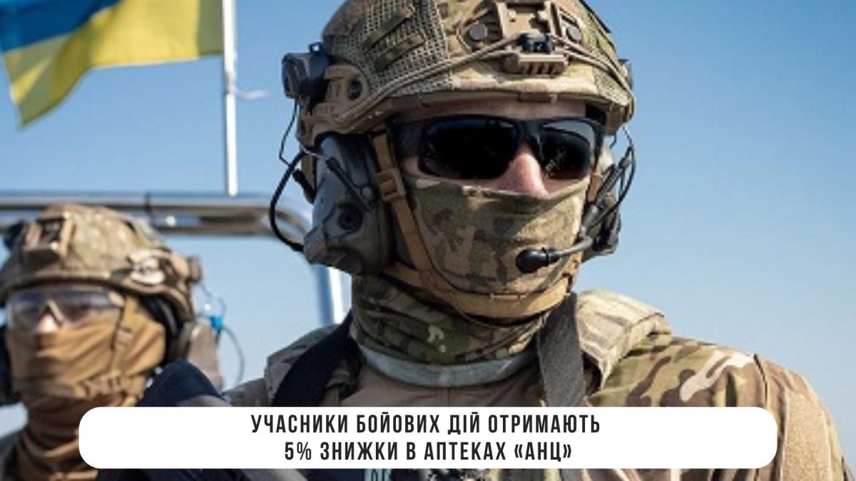 Мережа аптек «АНЦ», до якої входять також бренди «Копійка» та «ШАР@», запровадила постійну знижку 5% для учасників бойових дій у всіх своїх закладах. Це — частина ініціативи компанії, спрямованої на підтримку тих, хто боронить Україну.
